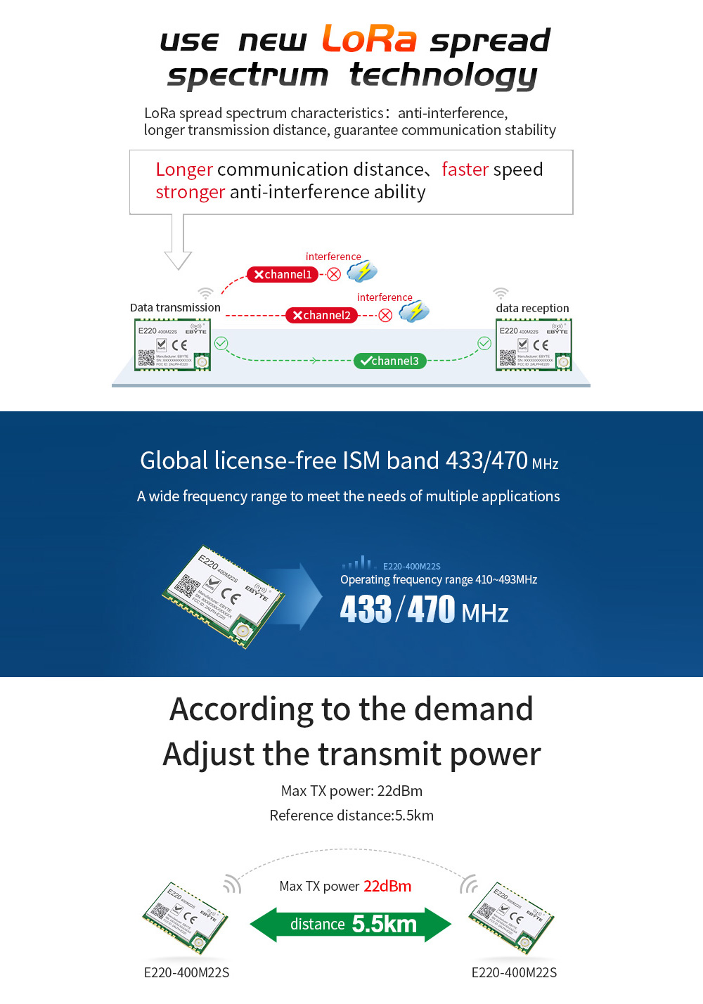 E220-M Series, LoRa Spread Spectrum Wireless Module E220-400M22S