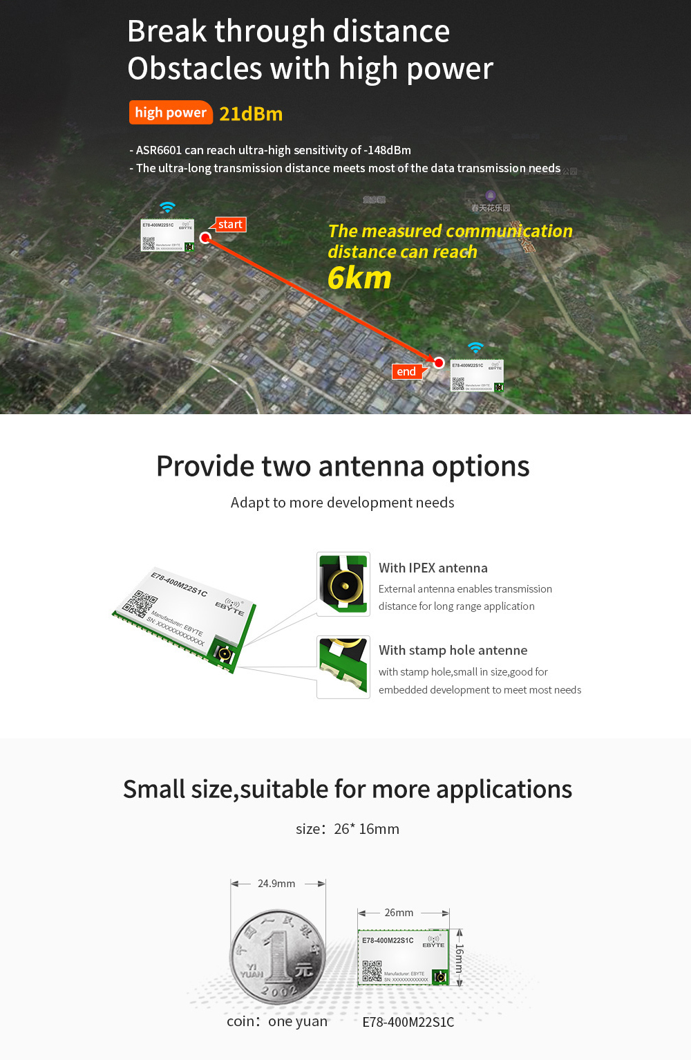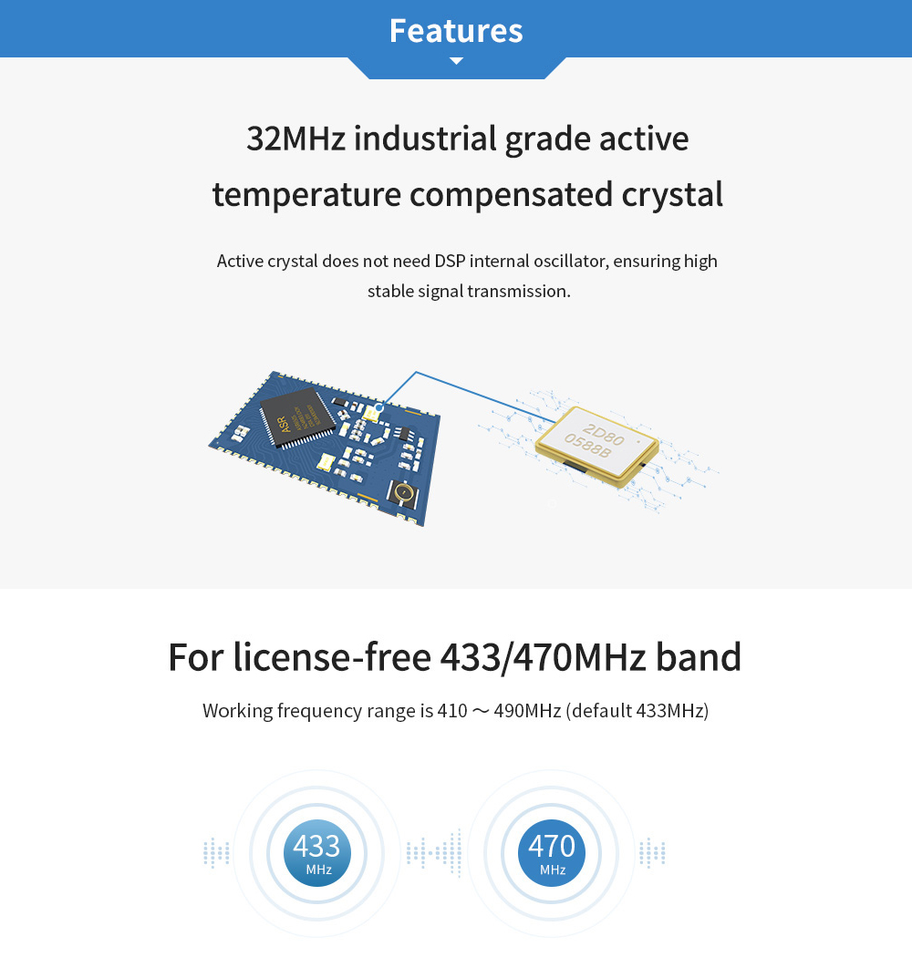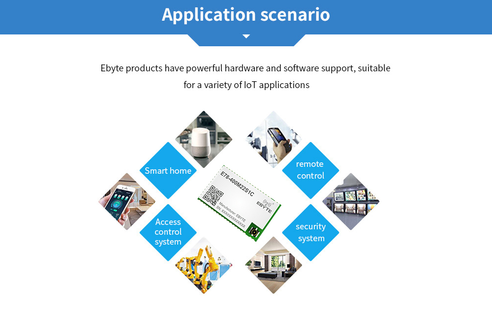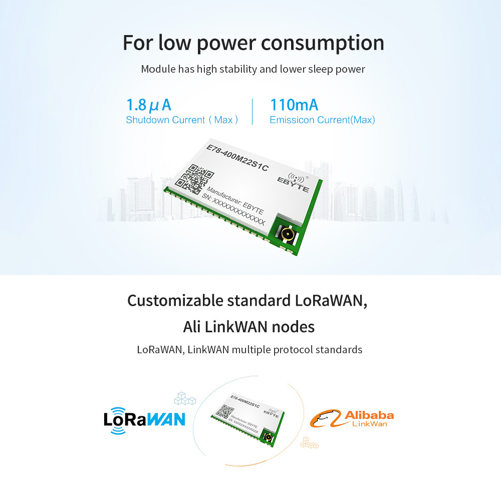 [Introduction]:E78 series are RF transceiver module of various frequency bands designed and manufactured by Chengdu Ebyte, with long communication distance and extremely low power mode current consumption. It is a small-sized SMD type(pin pitch 1. lmm).